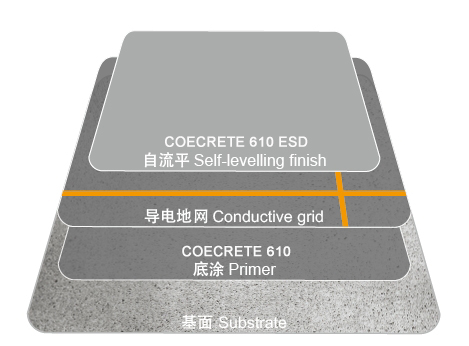 COECRETE 610 ESD (4~6mm)是水性聚氨酯砂浆自流平系统,是专为防静电而特殊研发的产品。COECRETE 610 ESD系统同时具备优异的耐化学品和机械性能,容易清理,涂膜薄,且完全防水。
