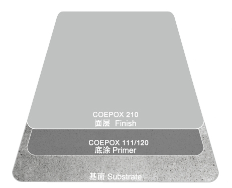 COEPOX 210 (0.5~1.5mm)是无溶剂环氧自薄涂系统,具有良好的机械性能,表面防滑,涂层美观。该系统可以在任何牢固且紧密的基面使用,如混凝土、砂浆层、瓷砖等,也可以在车流量多的区域使用,甚至在对耐化学品要求高的区域使用。该系统耐水,抗油污,抗碳氢化合物,耐污染,易清洗,优化基面的机械性能。